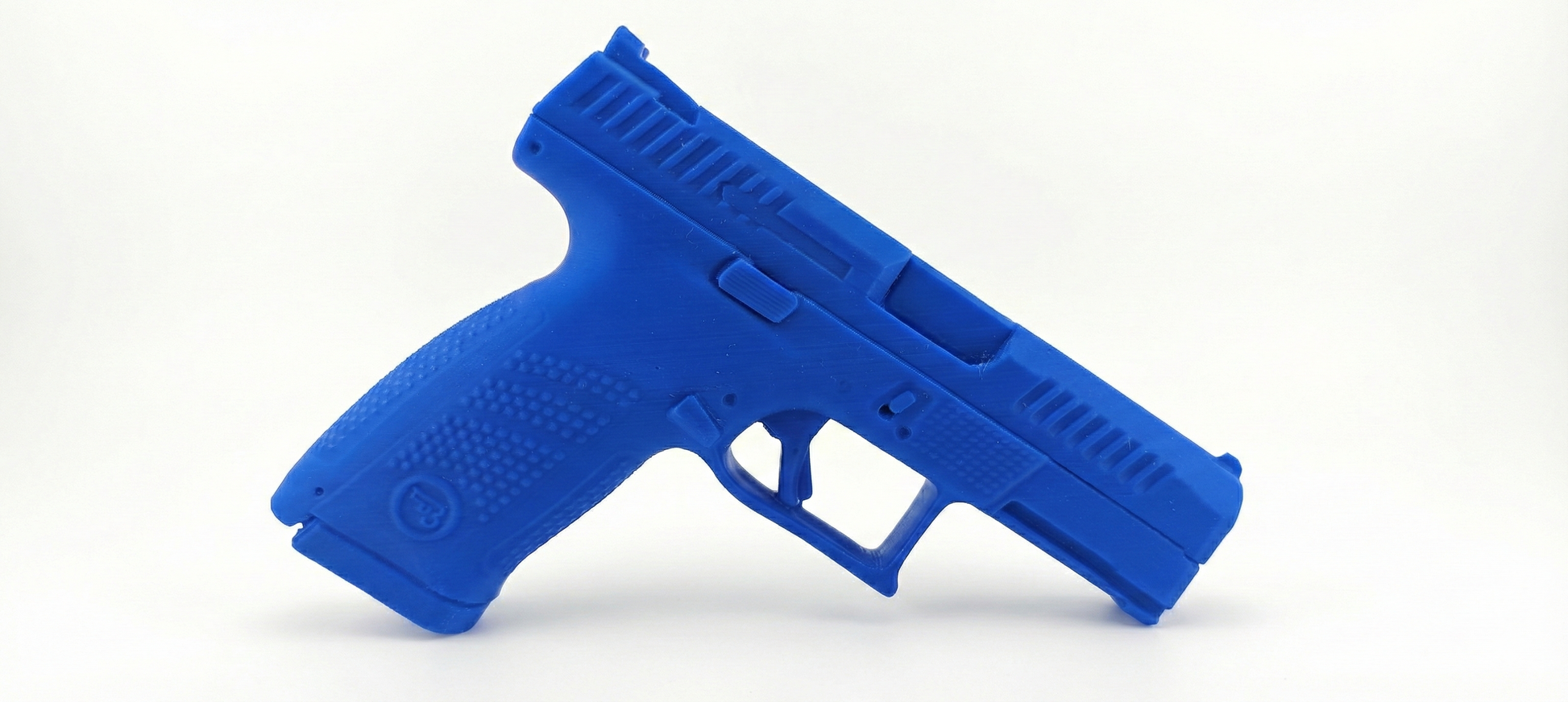 CZ P-10 C aus einem 3D Scan und somit 1:1 Größe im Vergleich zum Original. Die Trainingswaffen passt perfekt in das Holster.
