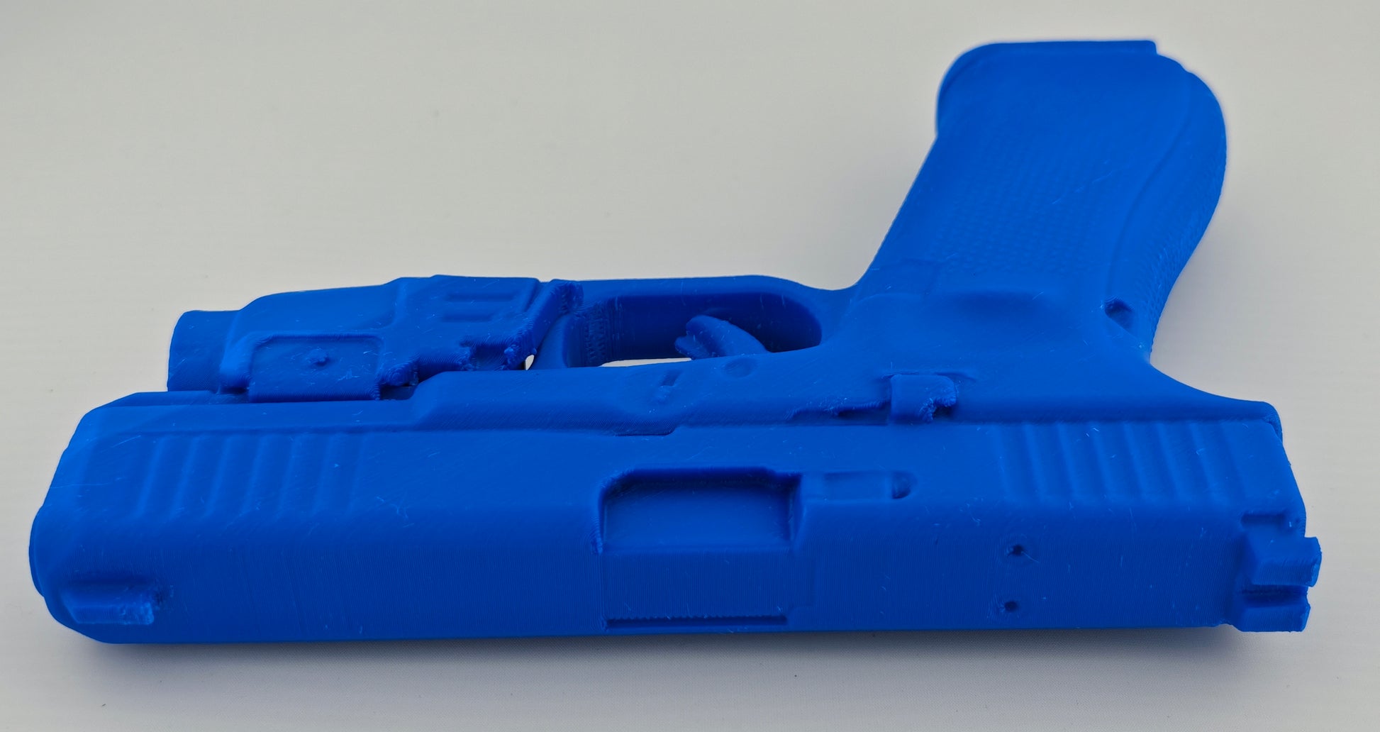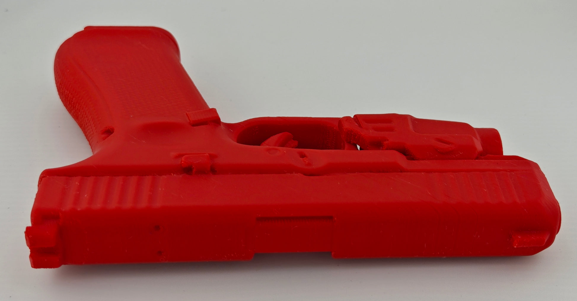 Glock 17 Gen 5 mit TLR-7X Lichtmodul aus einem 3D Scan und somit 1:1 Größe im Vergleich zum Original. Die Trainingswaffen passt perfekt in das Holster.